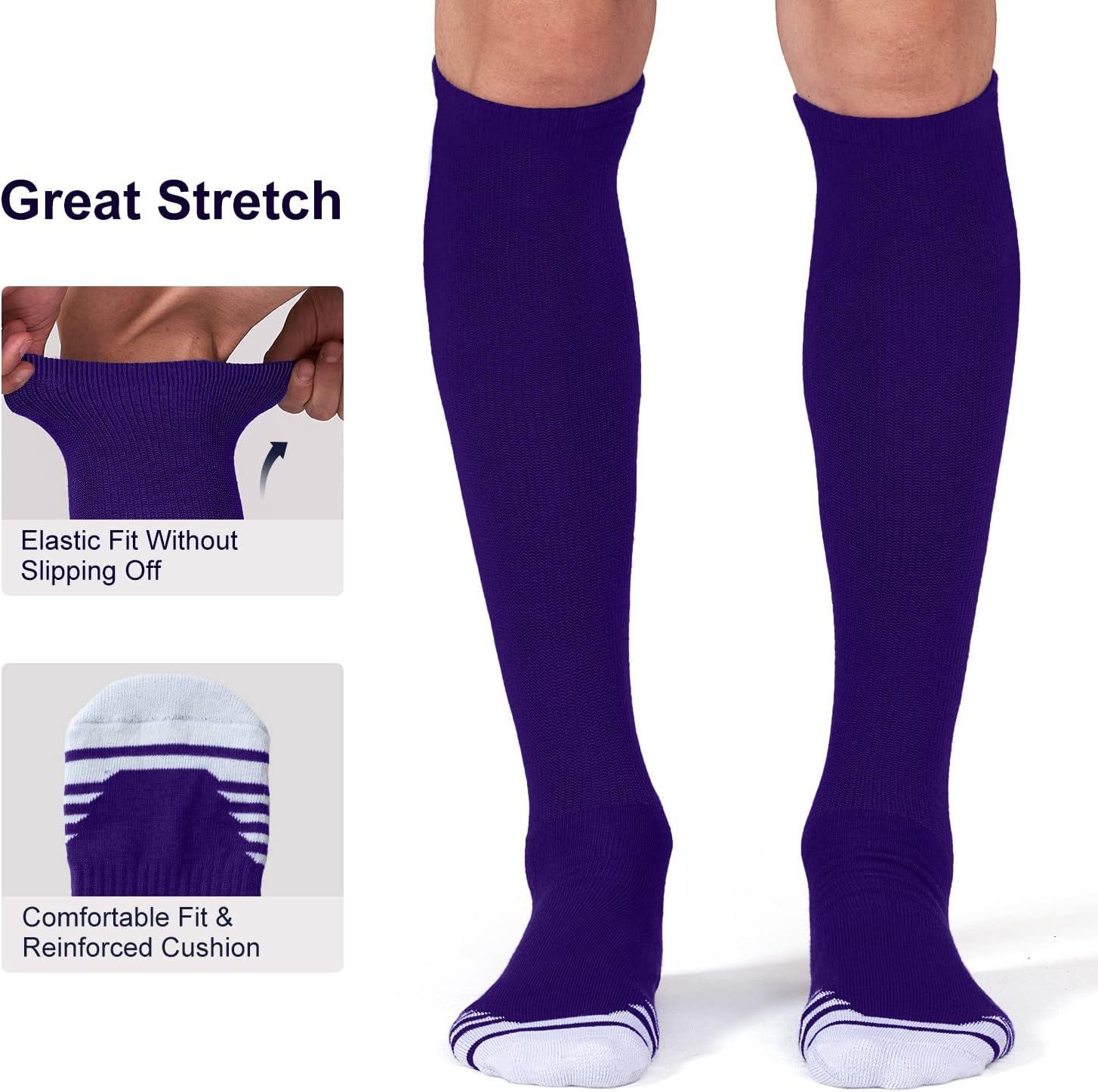 FITRELL 2/3 Pack Baseball Soccer Softball Socks for Kids Youth Men & Women Over-the-Calf Knee High Socks (Multiple Colors)(Purple (2 Pack))