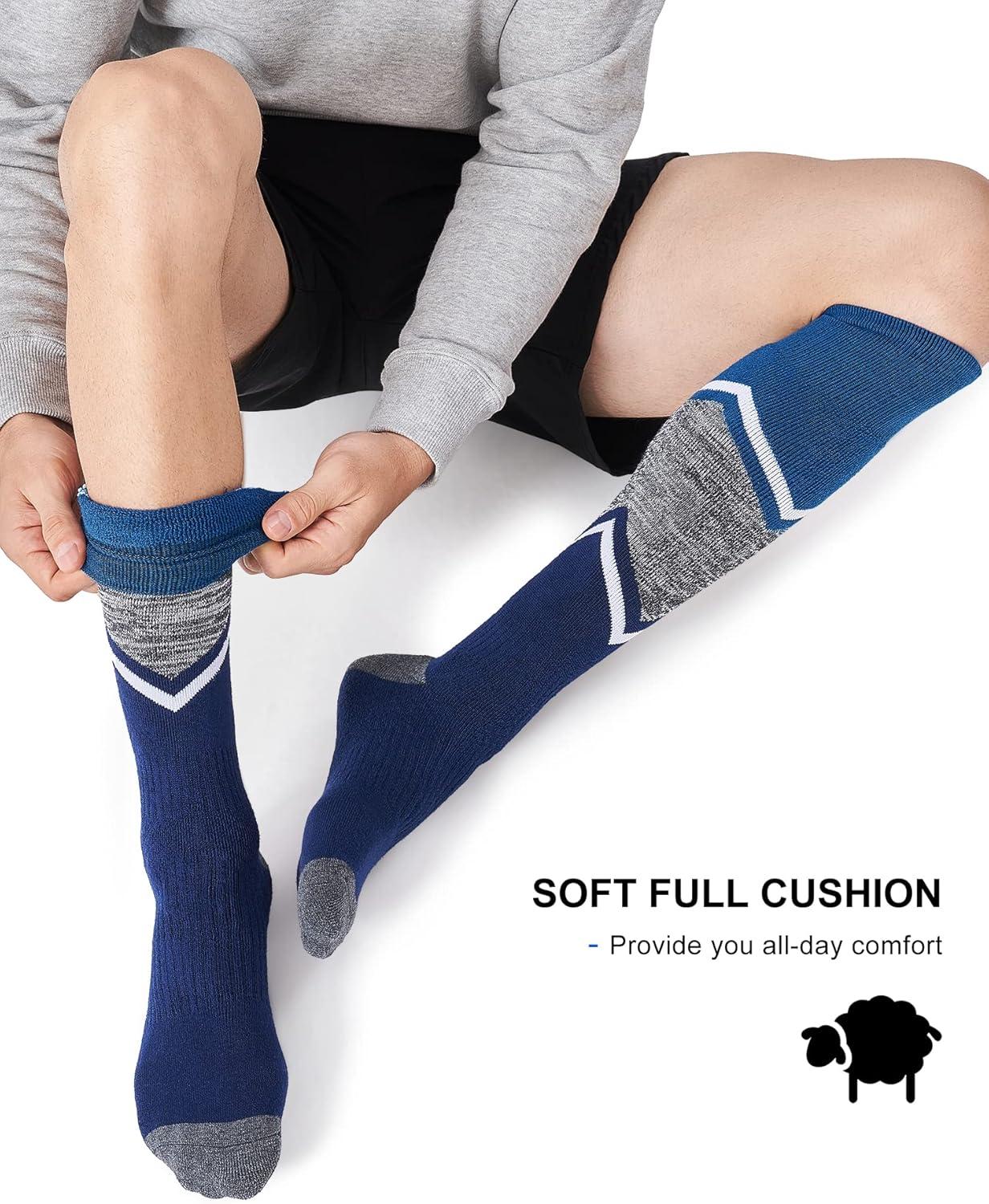 FITRELL 2/3 Pack Merino Wool Ski Socks for Snowboarding, Full Cushioned Winter Thermal Knee-high Warm Socks for Men and Women(Blue)