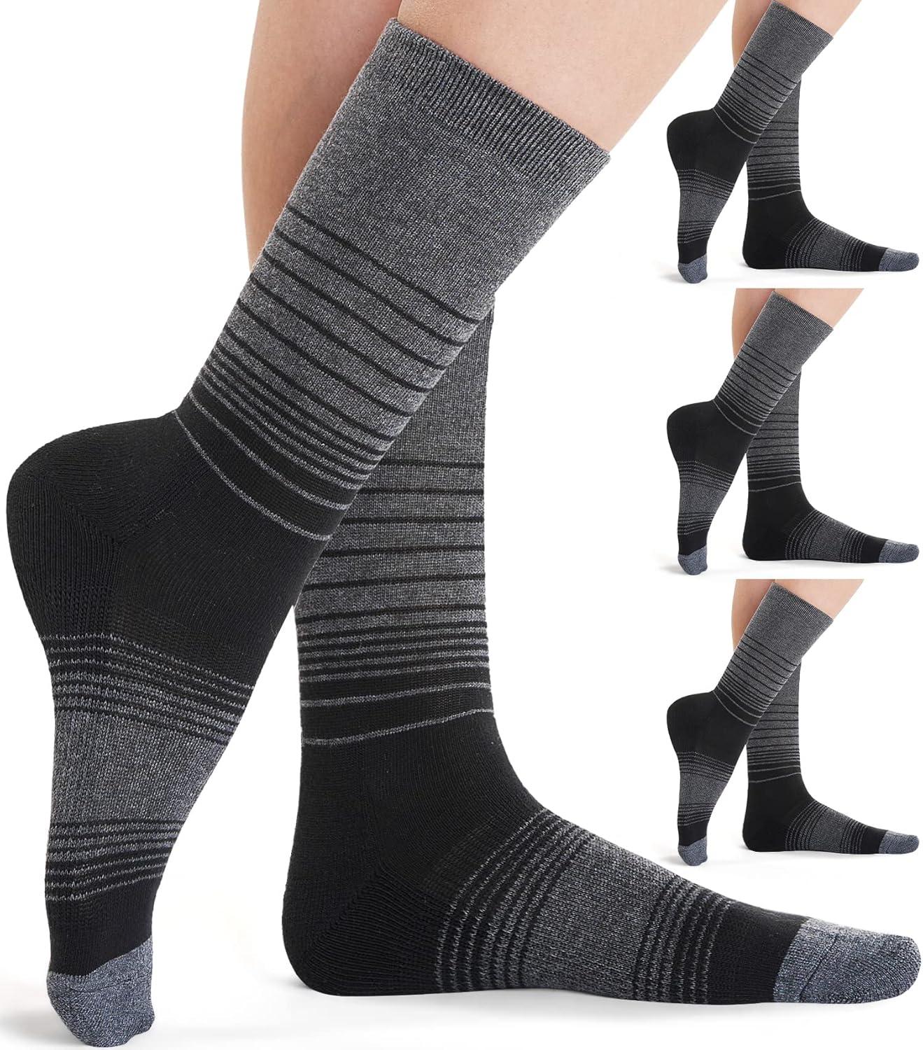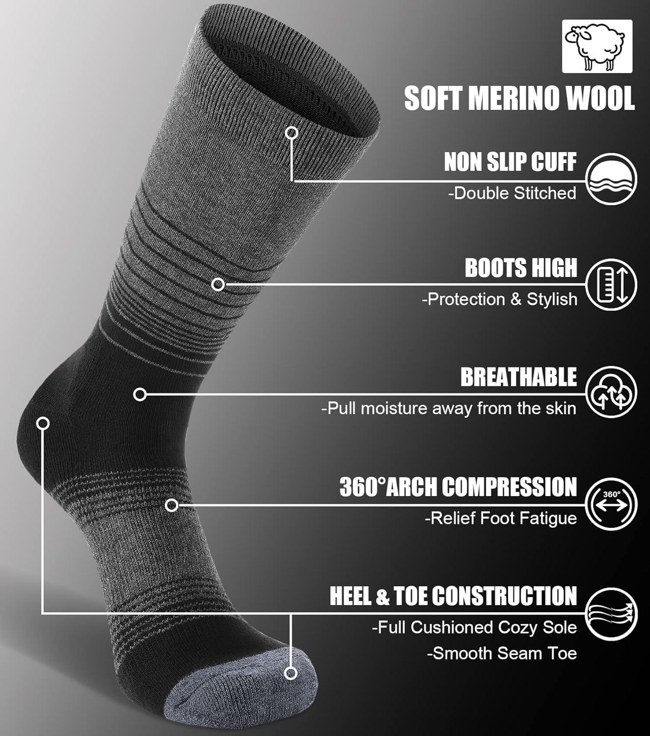 FITRELL 4 Pack Women’s Merino Wool Hiking Socks Wicking Cushioned Warm Thermal Walking Boot Crew Socks Woollen Socks(Black*4)