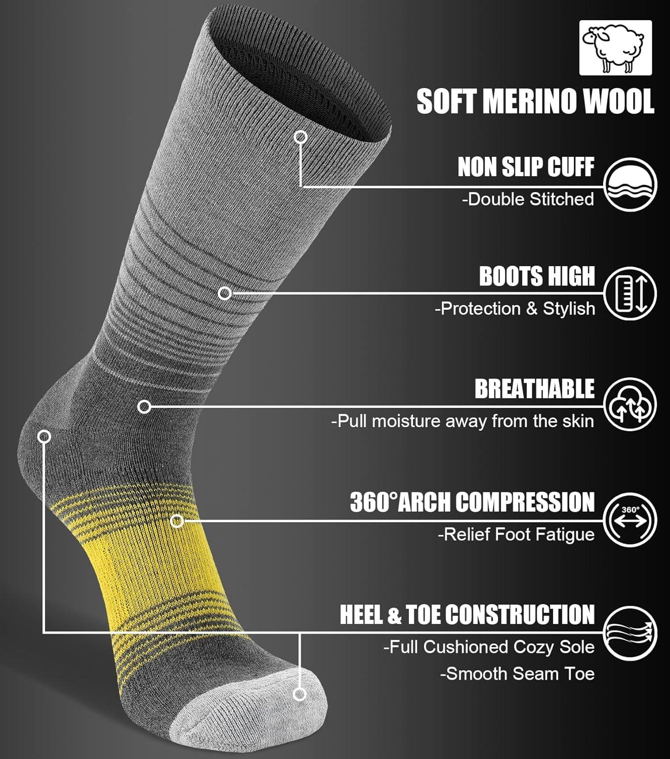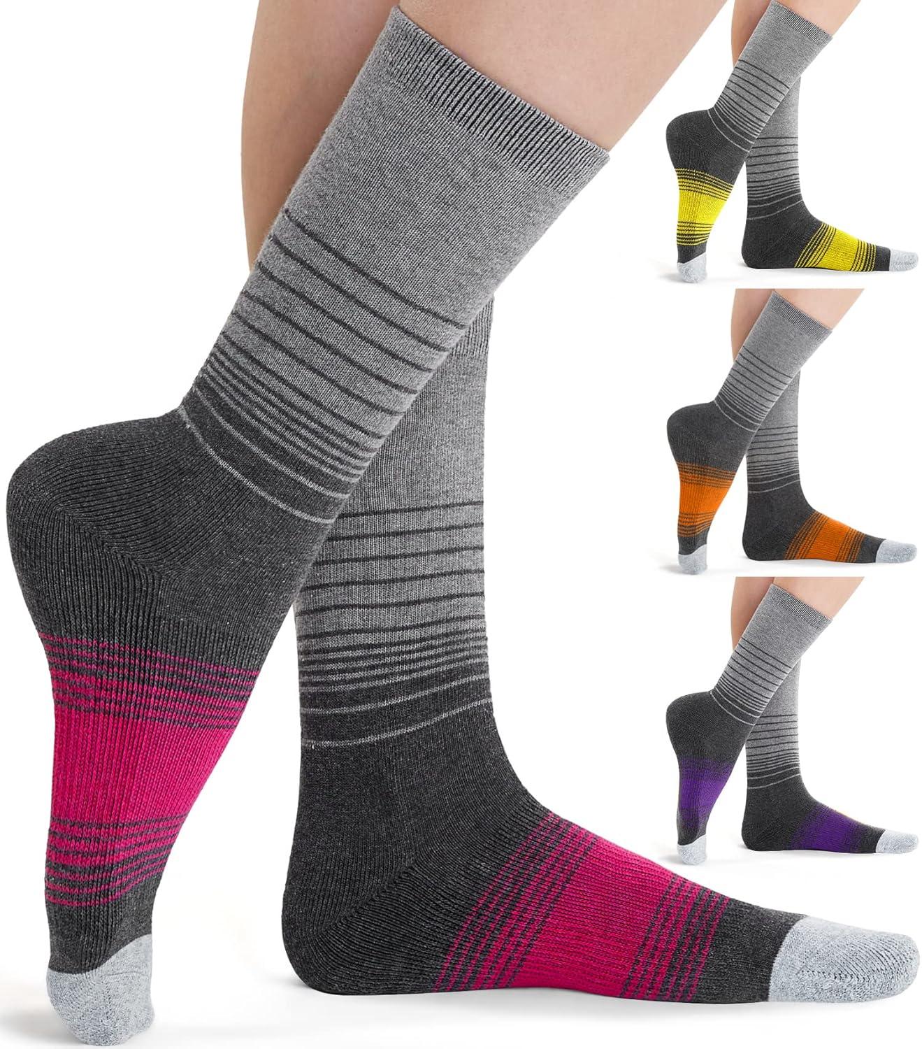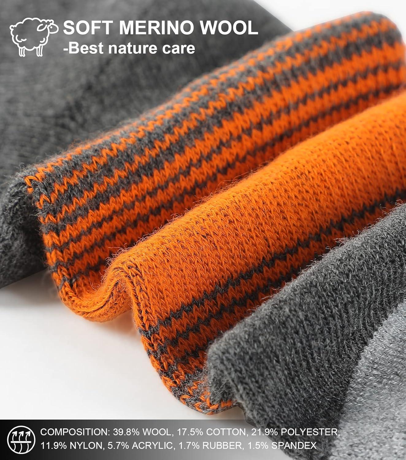 FITRELL 4 Pack Women’s Merino Wool Hiking Socks Wicking Cushioned Warm Thermal Walking Boot Crew Socks Woollen Socks(Pink+purple+yellow+orange)