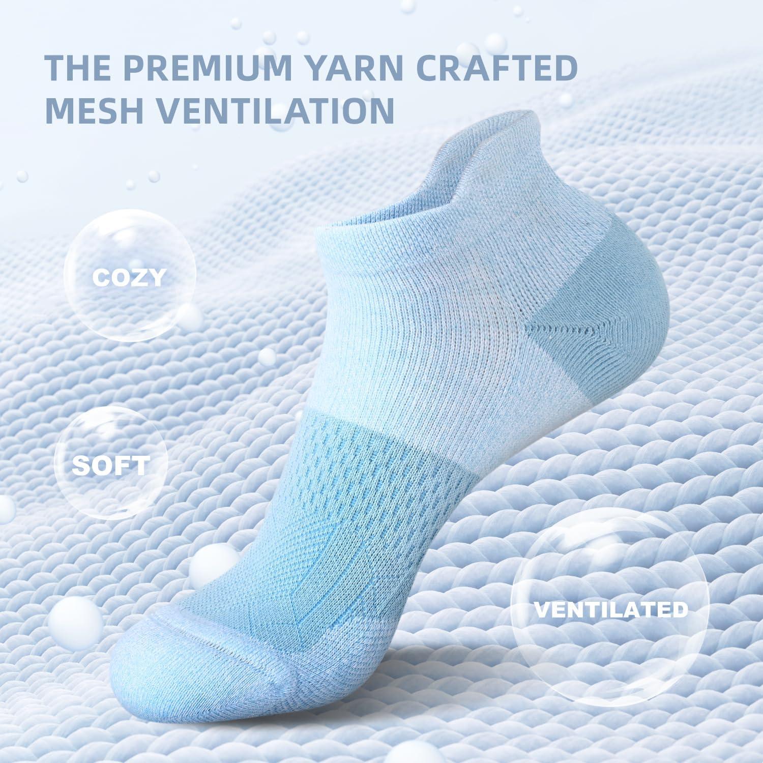 FITRELL 5-6 Pairs Ankle Running Socks for Women Athletic Cushioned Low Cut Tab Sports Socks(5 Pairs Rococo)