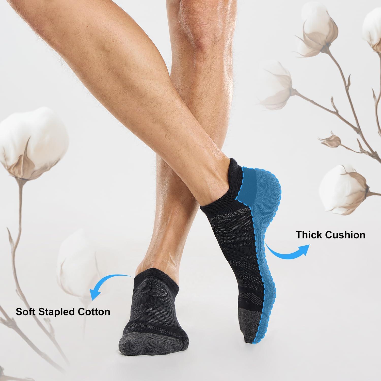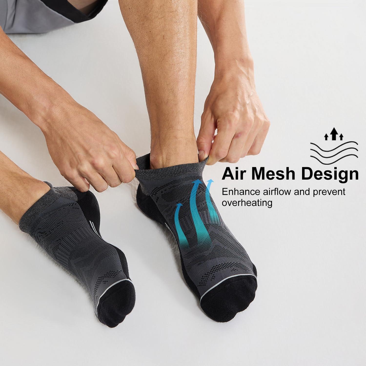 FITRELL 6 Pack Men’s Ankle Running Socks Low Cut Cushioned Athletic Sports Socks 7-9/9-12/12-15(New Grey Black)