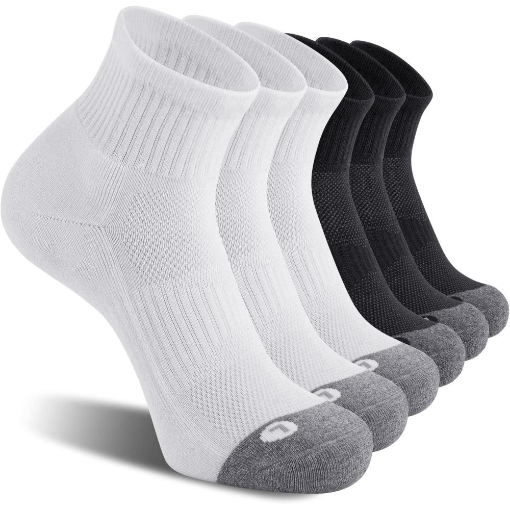 FITRELL 6 Pack Men’s Athletic Ankle Socks Cushioned Sports Running Socks 7-9/9-12/12-15(3 White + 3 Black)