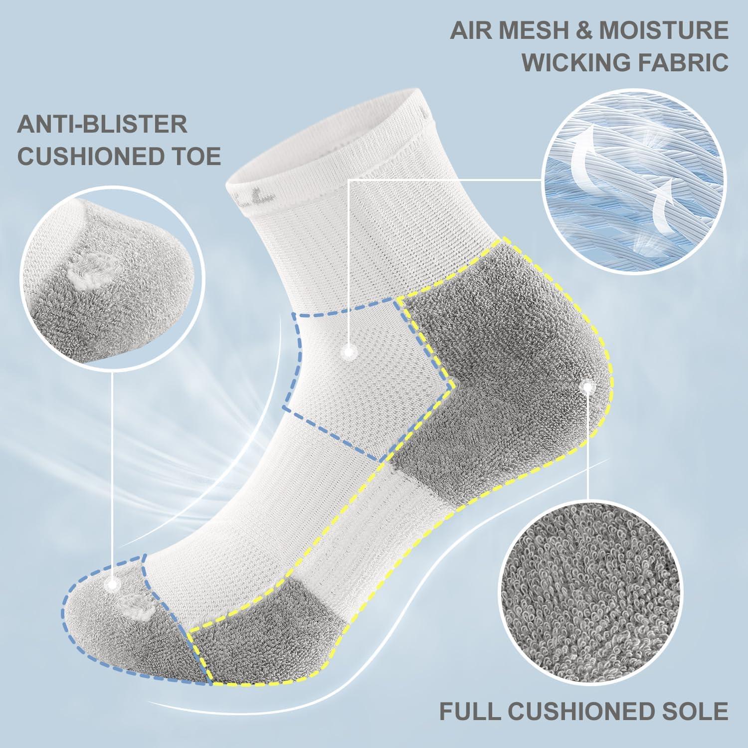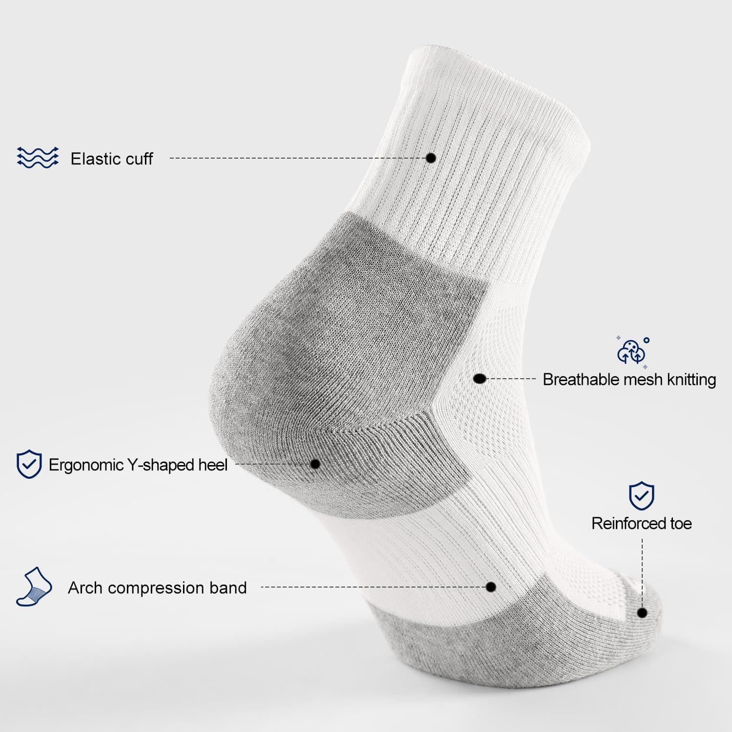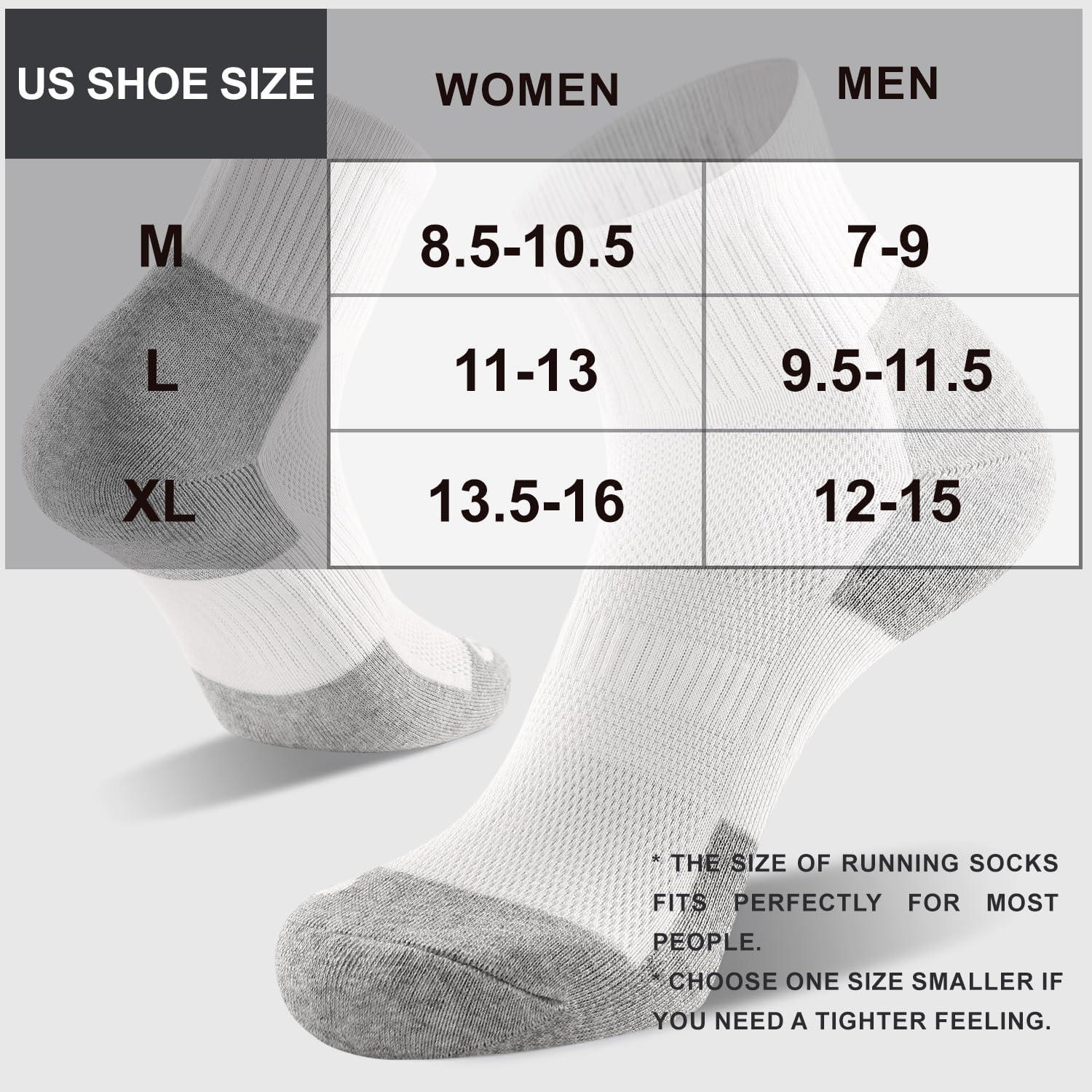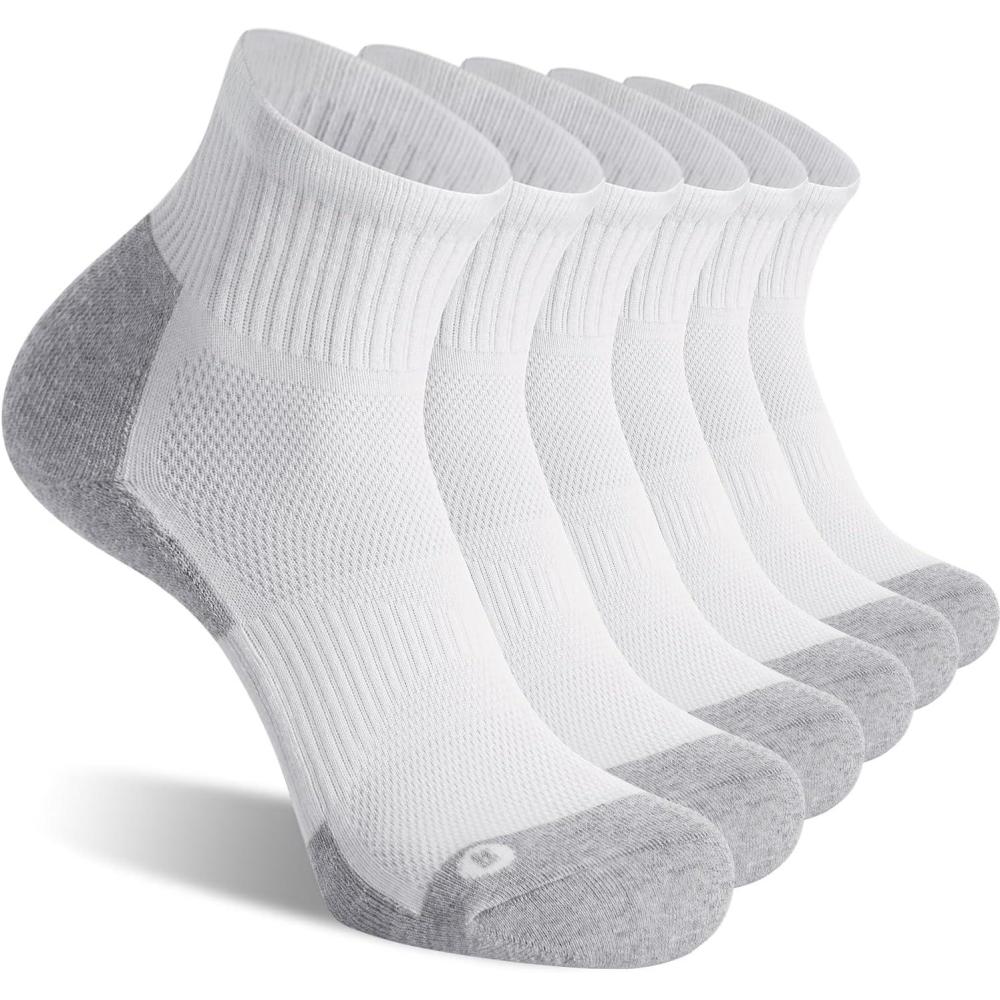 FITRELL 6 Pack Men’s Athletic Ankle Socks Cushioned Sports Running Socks 7-9/9-12/12-15(White/Grey)