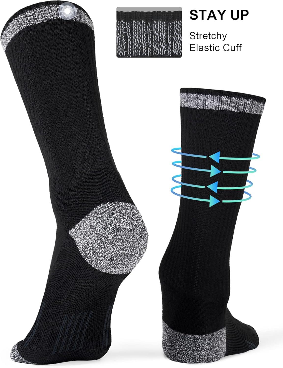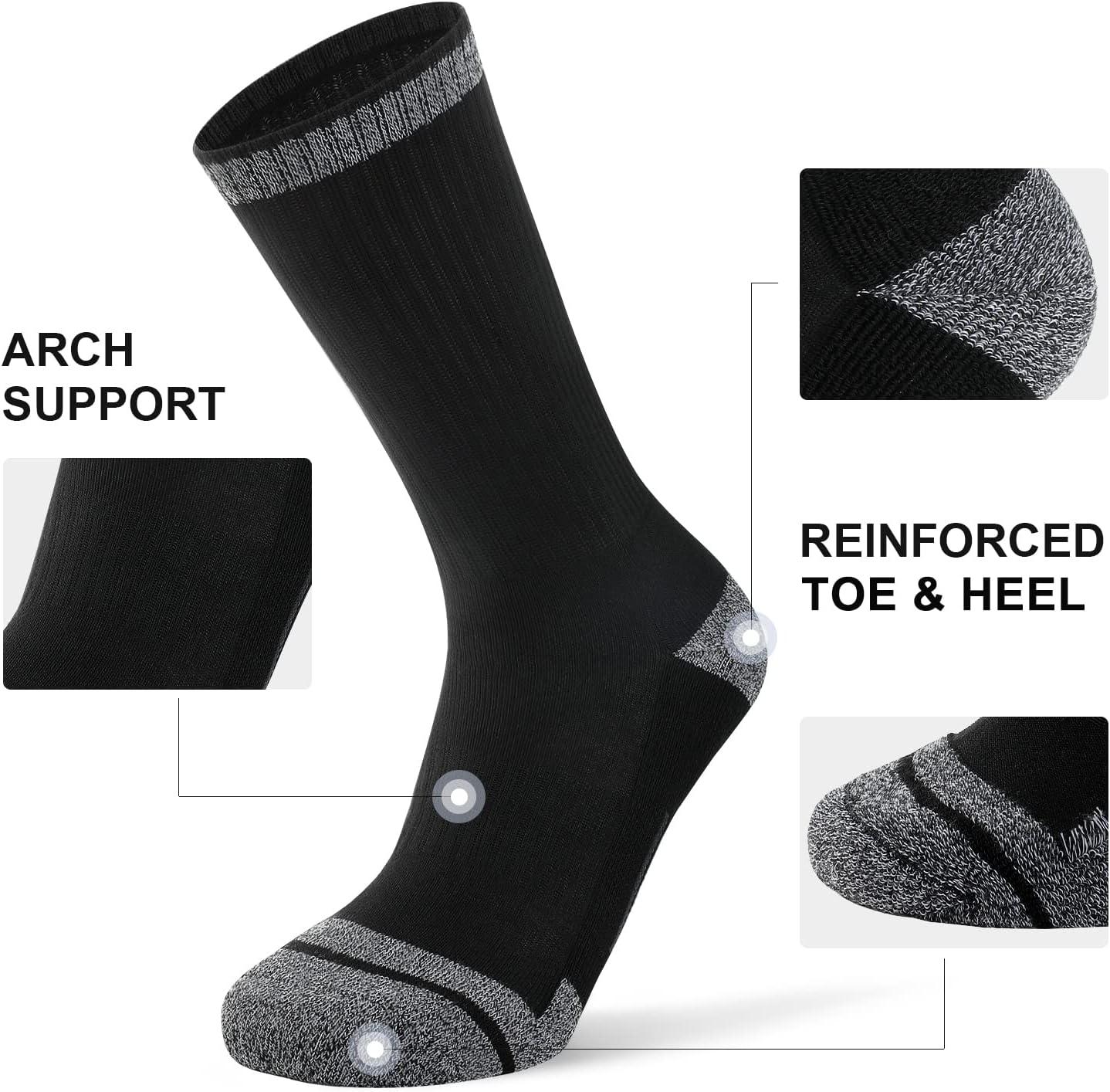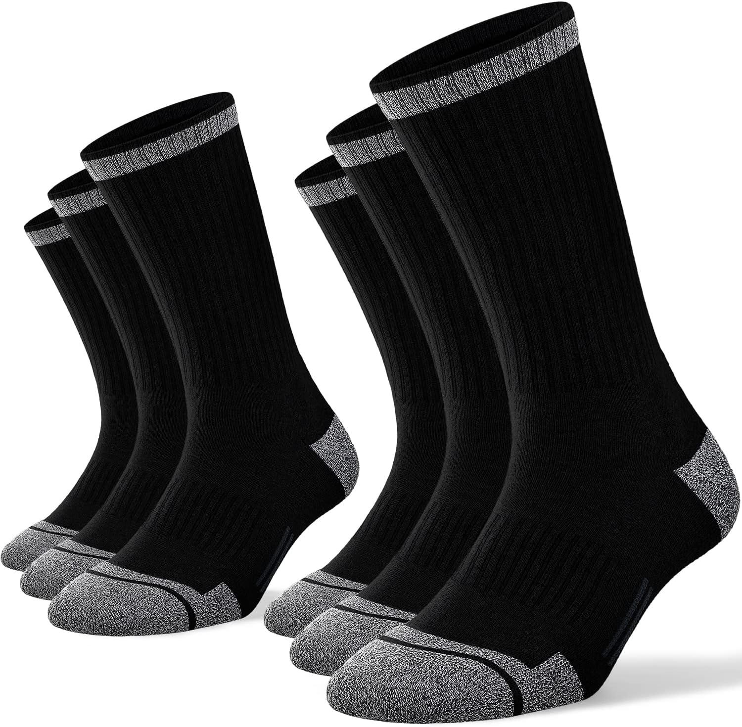 FITRELL 6 Pack Men’s Athletic Moisture Wicking Crew Socks Cushioned Sport Running Work Boot Socks Size 9-12/12-15(Black*6)