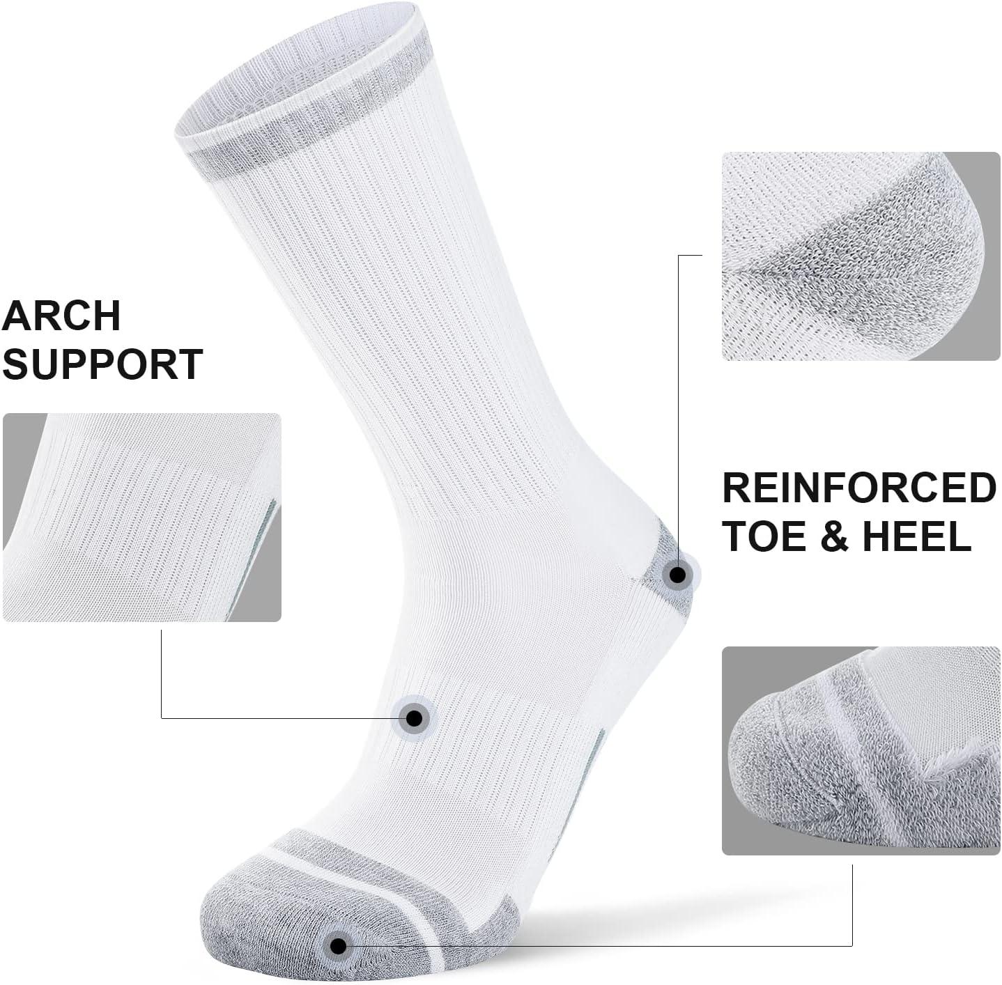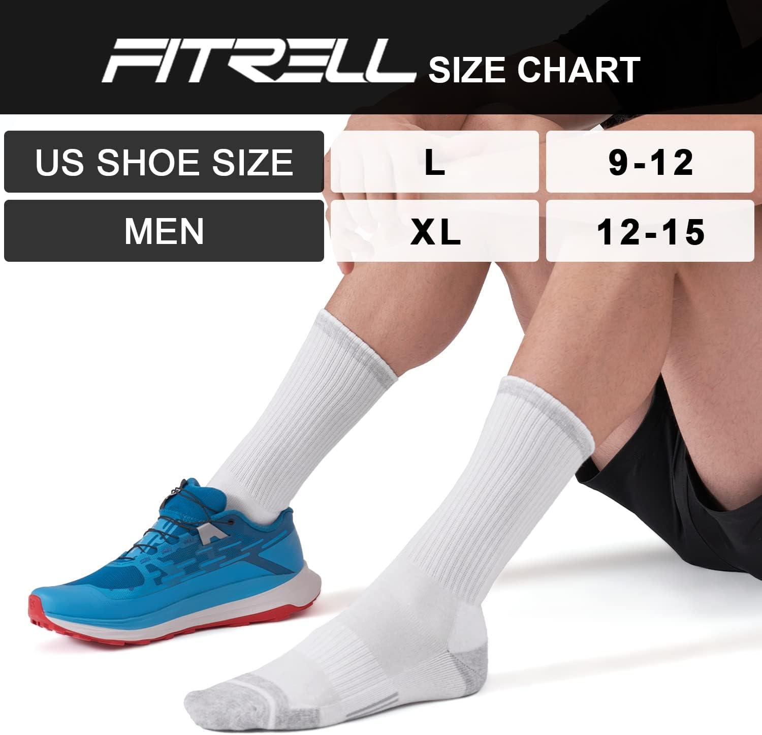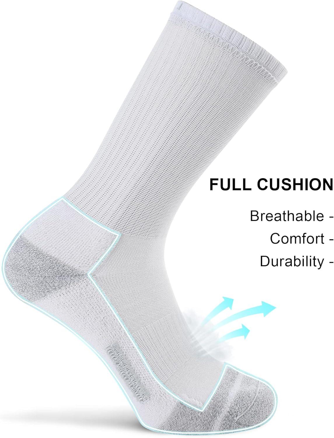 FITRELL 6 Pack Men’s Athletic Moisture Wicking Crew Socks Cushioned Sport Running Work Boot Socks Size 9-12/12-15(White*6)