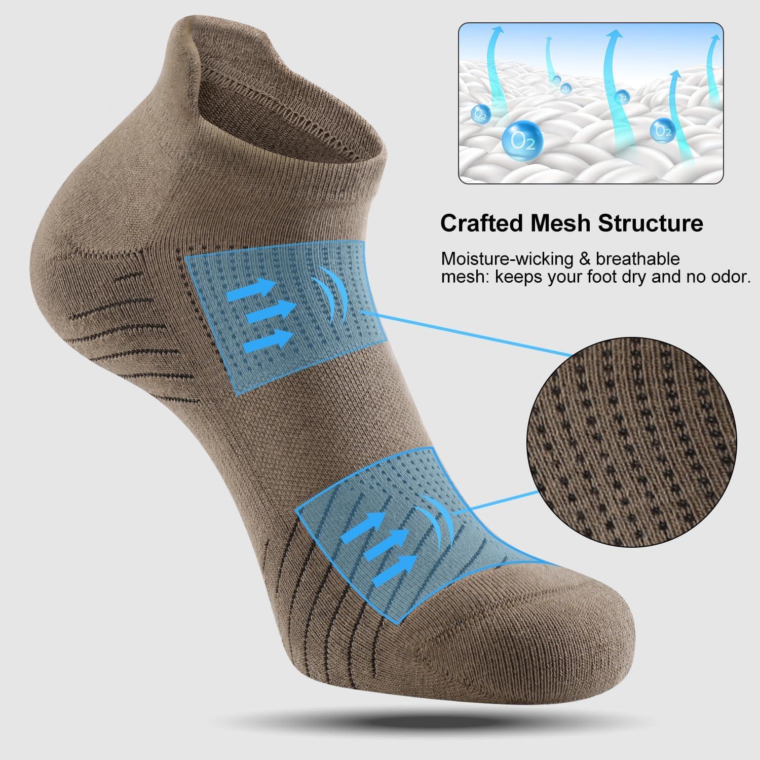 FITRELL 6 Pack Men’s Athletic Running Ankle Socks Low Cut Cushioned Wicking Anti-Blister Breathable Sport Socks(Almond+khaki+brown+black)