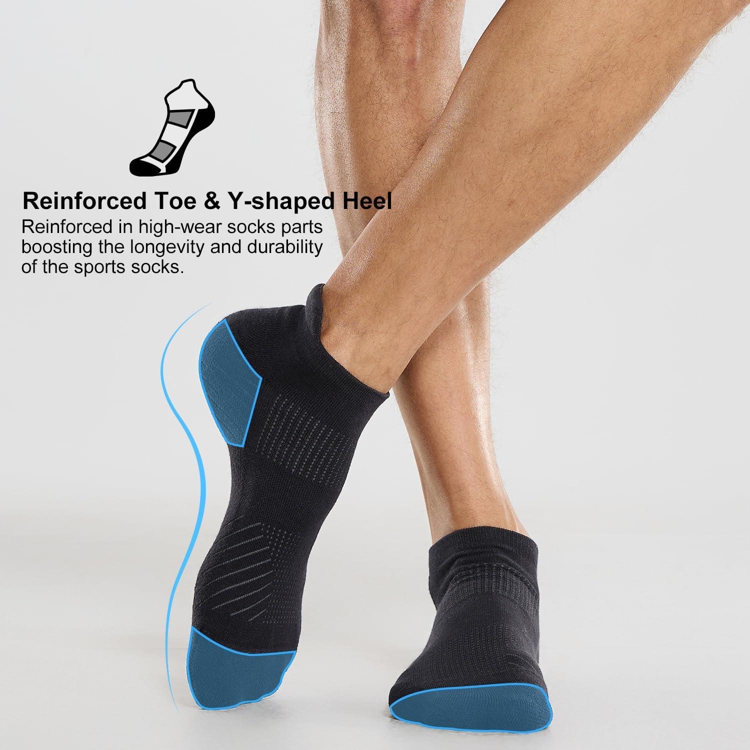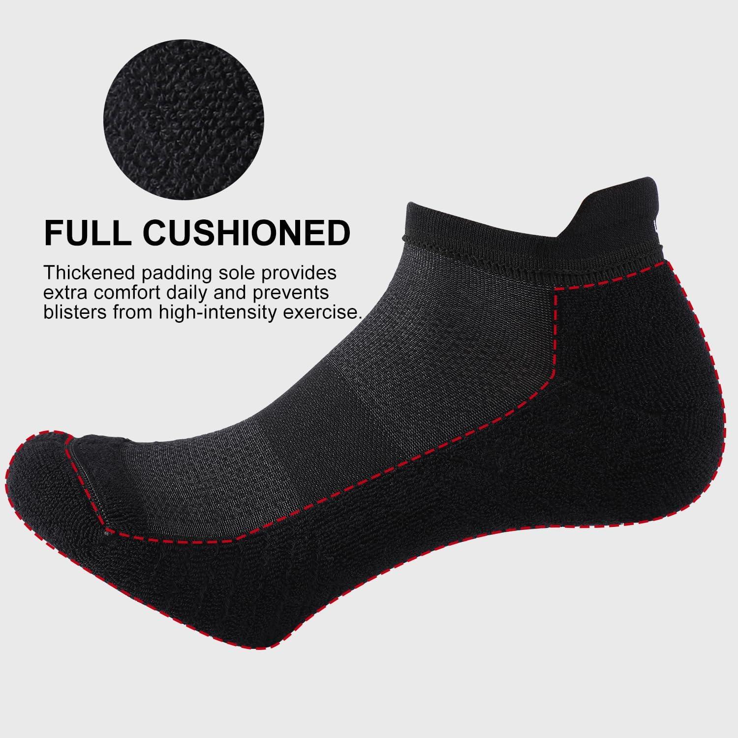 FITRELL 6 Pack Men’s Athletic Running Ankle Socks Low Cut Cushioned Wicking Anti-Blister Breathable Sport Socks(Black)