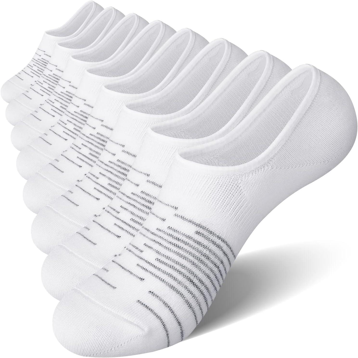FITRELL 8 Pack Women’s No Show Socks Size 6-9/9-11 Non-slip Boat socks(White*8)