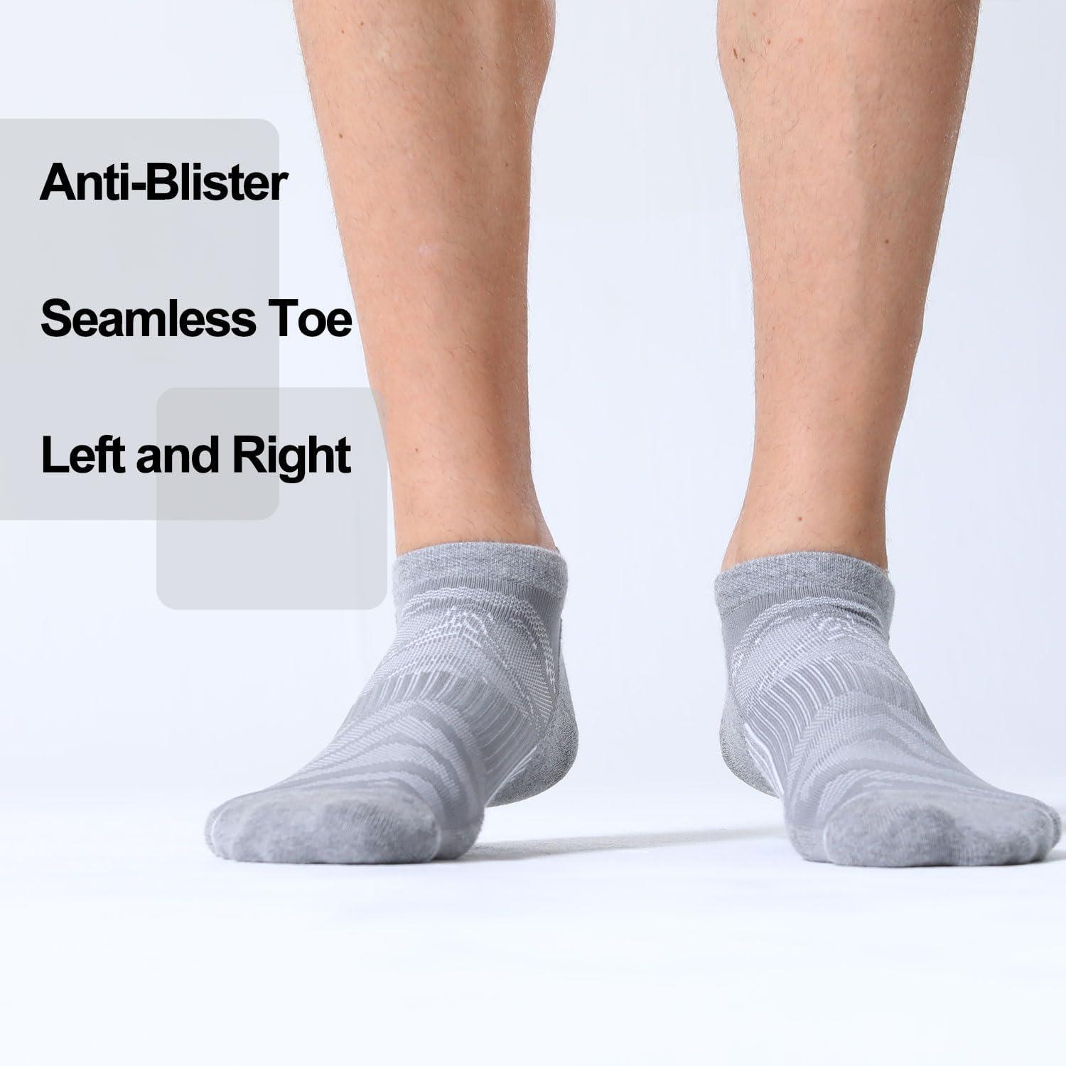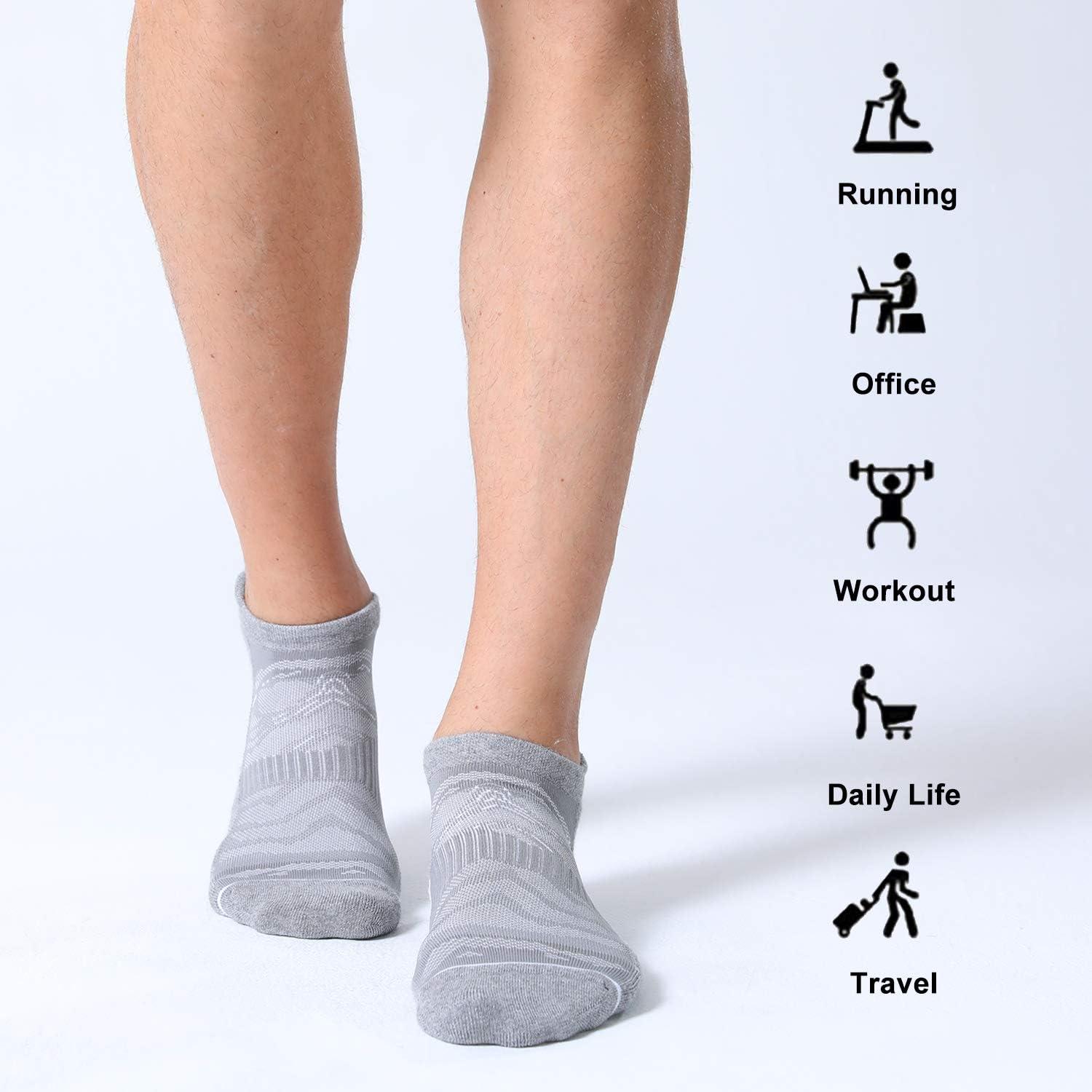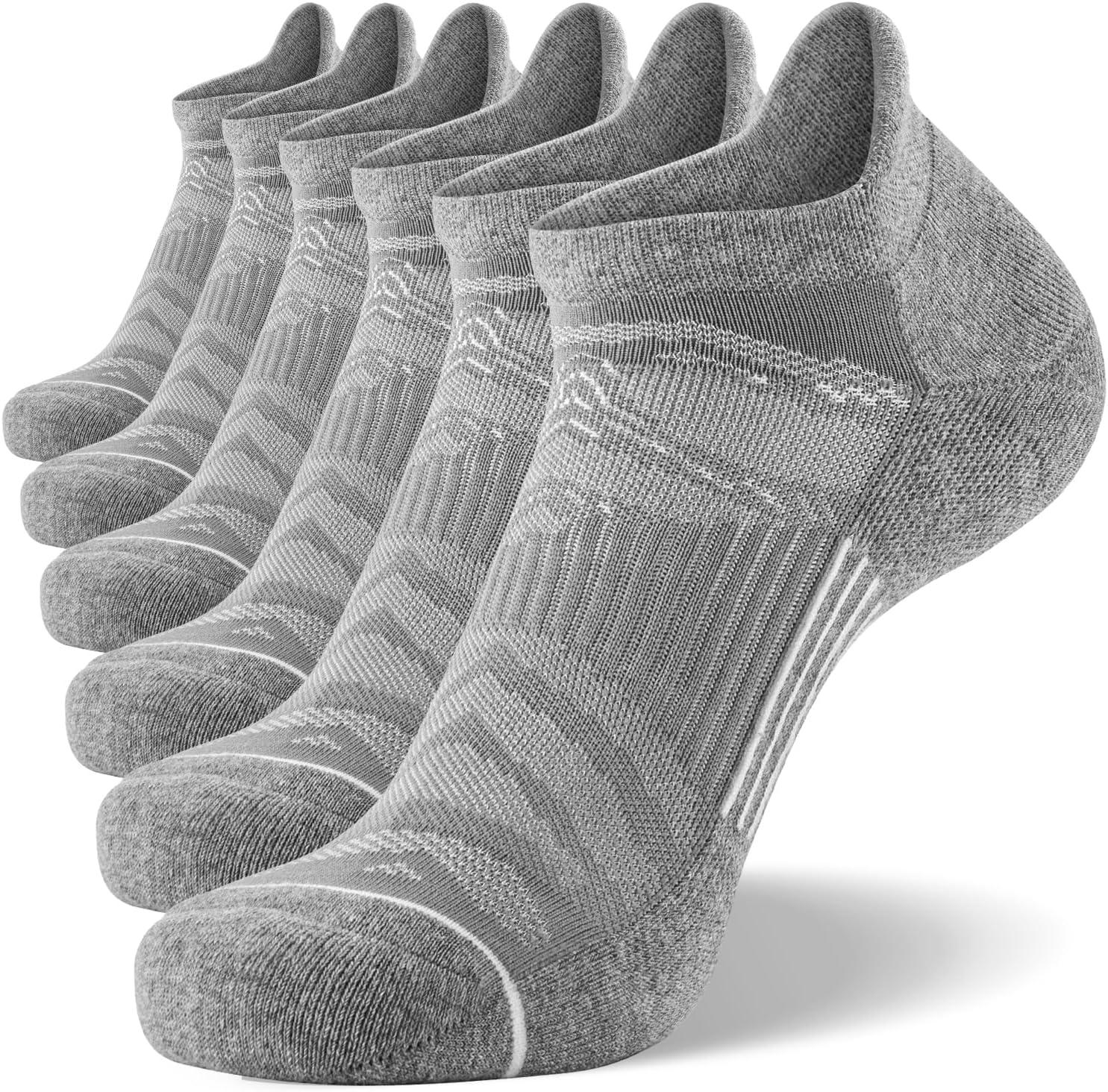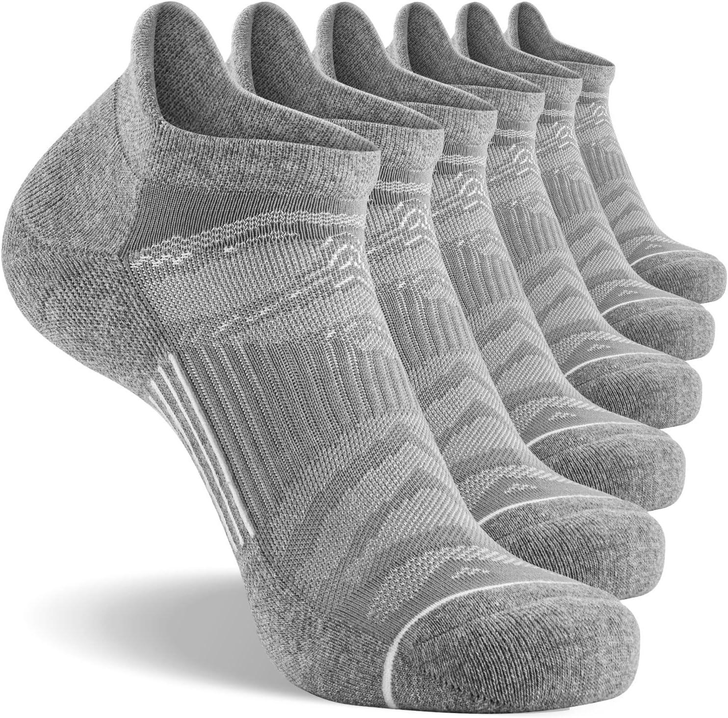 FITRELL Men’s 6 Pack Ankle Running Socks Low Cut Cushioned Athletic Sports Socks 7-9/9-12/12-15(Light Gray+white)