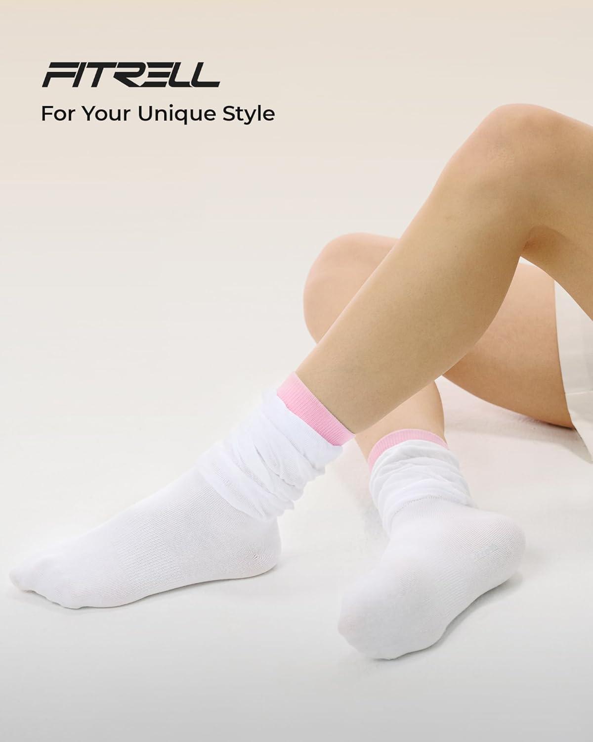 Be the first to review “FITRELL Slouch Crew Socks for Women, 3 Pairs Soft Cotton Mid Calf Cute Retro Scrunch Socks(White Pink+white Blue+white Green)”