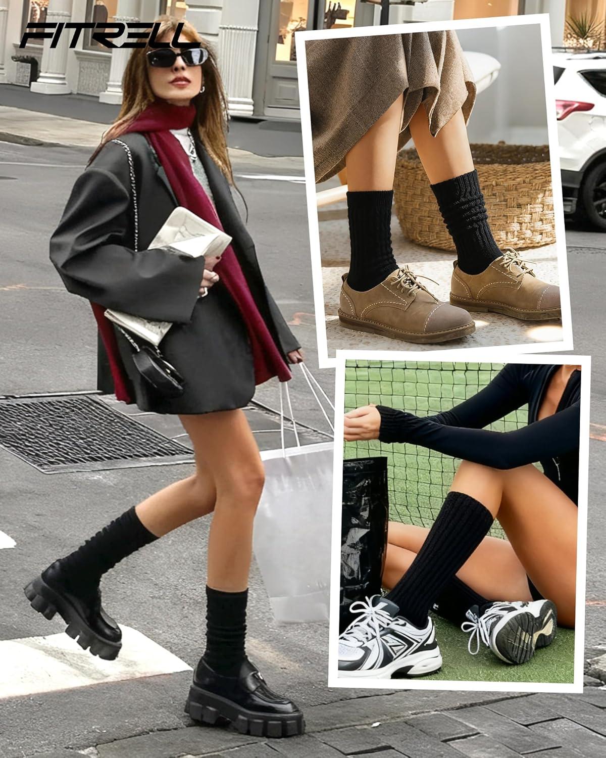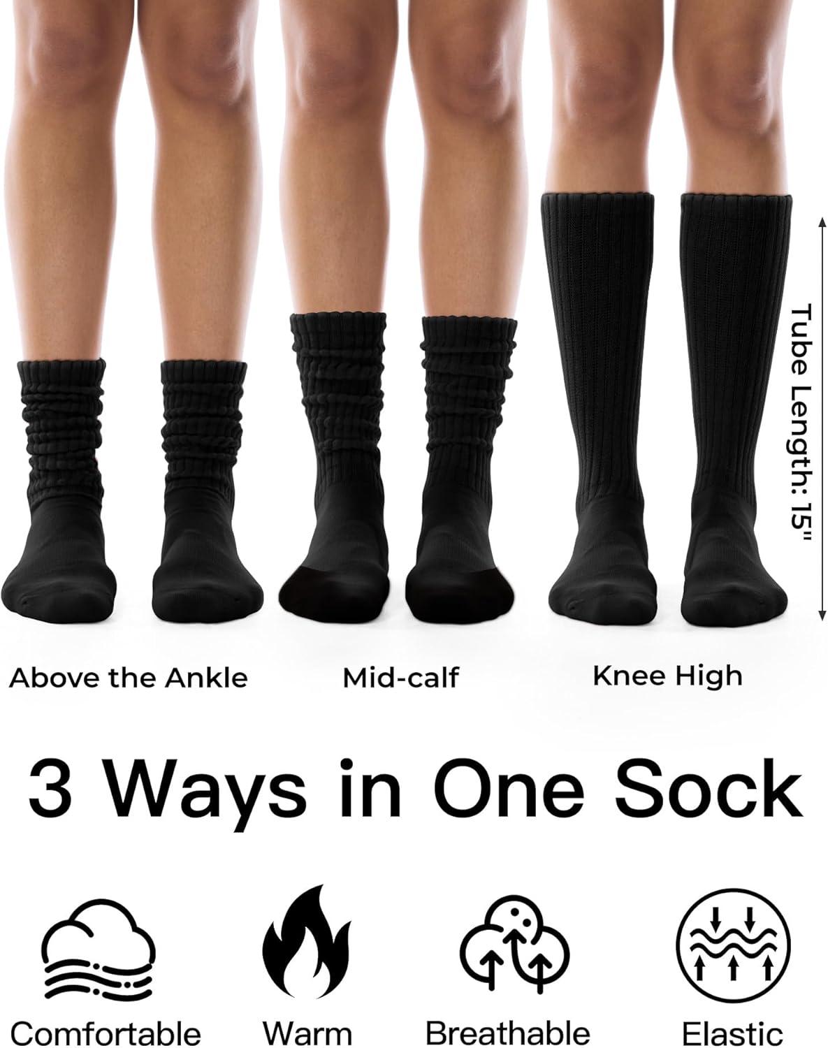FITRELL Slouch Socks for Women, 3 Pairs Soft Cotton Knee High Scrunch Tube Boot Socks(Black)